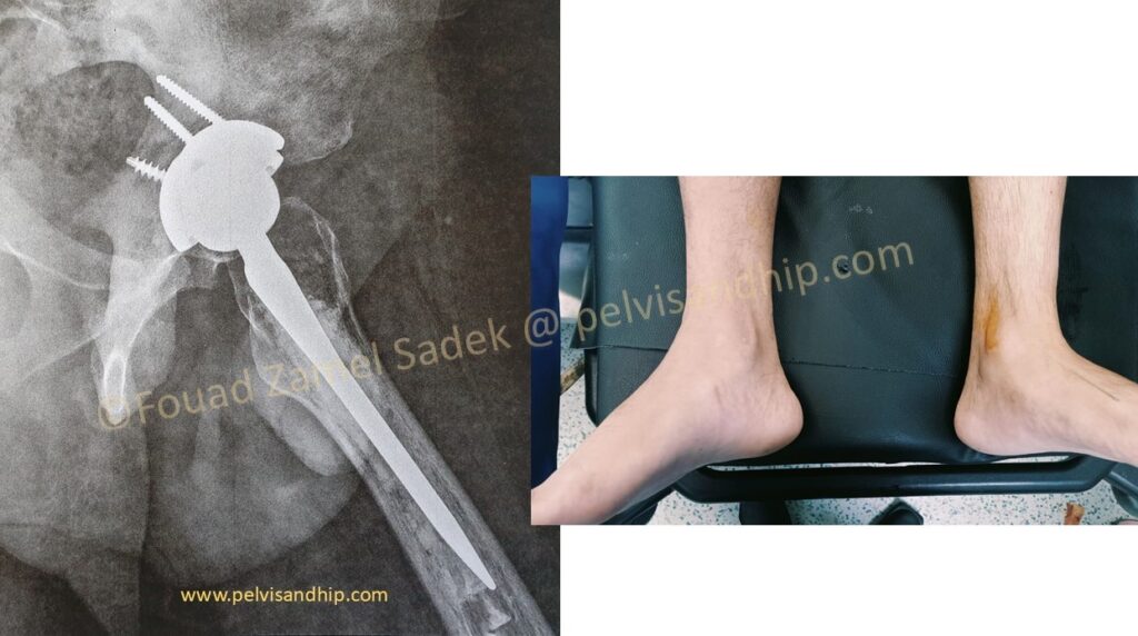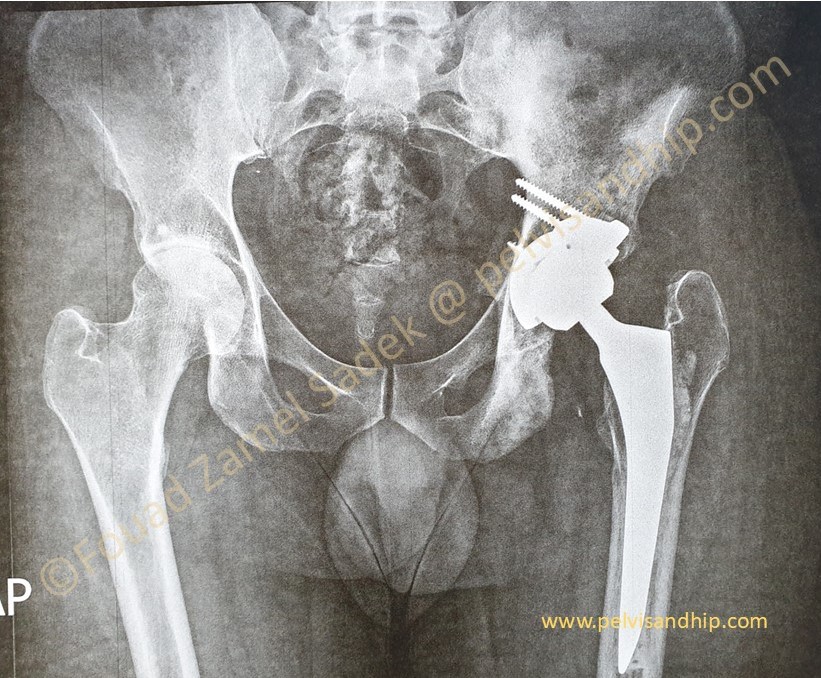 A cemented stem was chosen due to very poor quality bone withing the metaphysis of the femur and for that a cemented option for the femoral stem was chosen. The leg length adjusted as per immediate postoperative finding. At the last follow up, patient is walking with no support. He has a very reasonable abduction function. He has returned to work with good satisfaction. Still working on improving his abduction function.